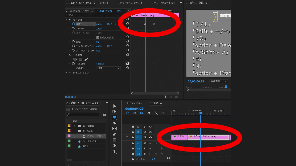 応用 Premiere Proのショートカットキーで時短しよう。