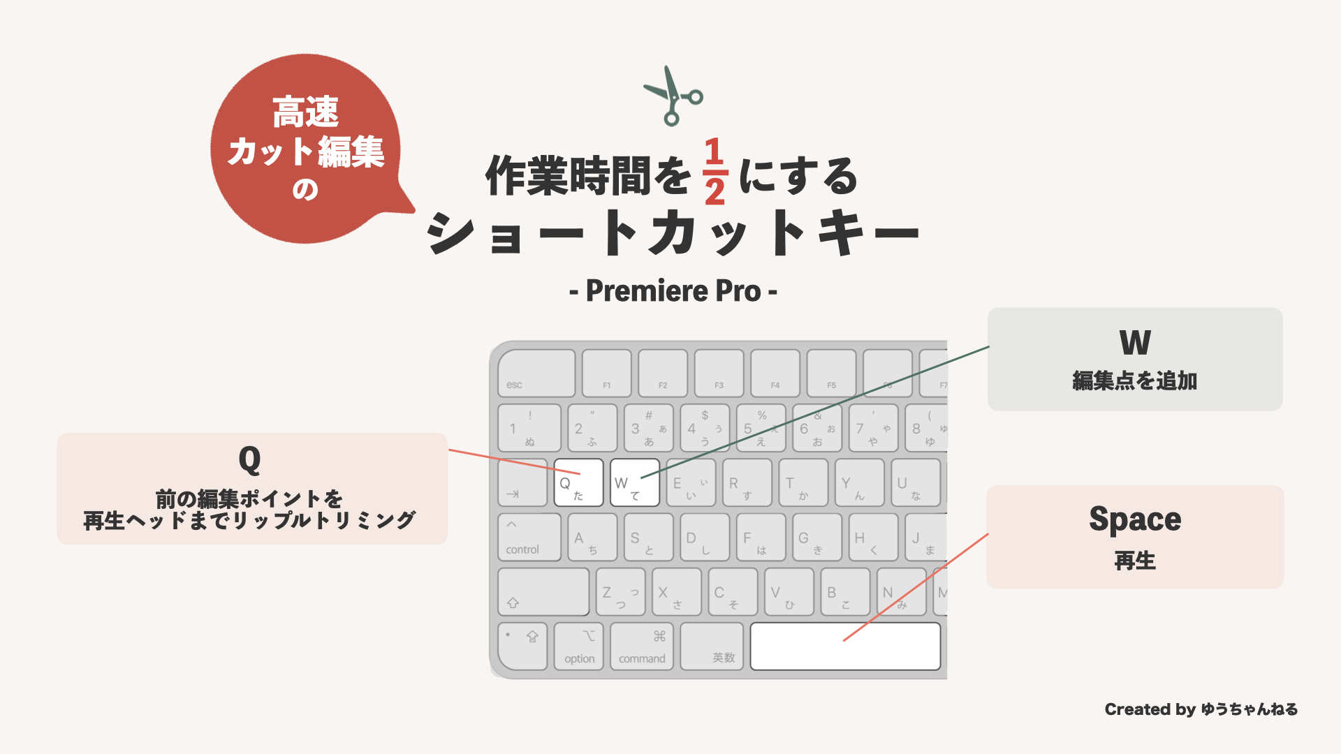カット作業が半分に!Premiere Proのショートカット編集ゆうちゃんねる。