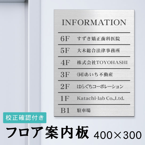 フロア案内板 ステンレス調 400×300 M 名入れ無料 校正付き シルバービルやテナントのサインボード、オフィスや事務所のインフォメーションサイン。エントランス 屋外対応の軽くて丈夫で銀 送料無料表札 サインプレートかたちラボ。