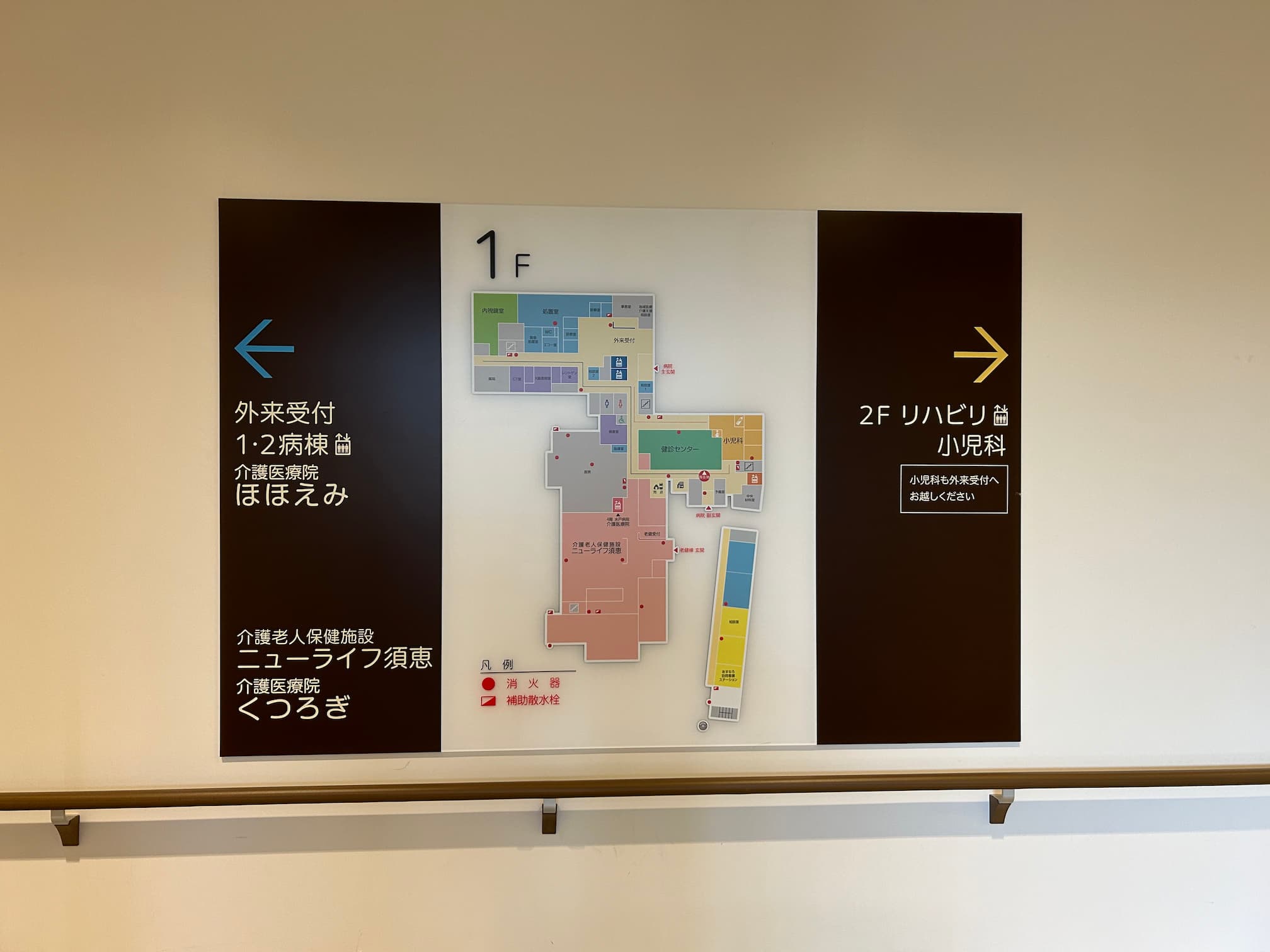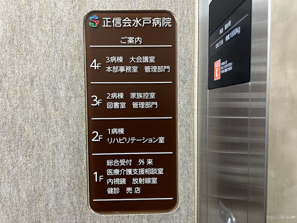 病院フロア案内・アルミ複合板・インクジェットシート製作正信会水戸病院様 福岡県糟屋郡 - 施工・製作実績福岡の店舗看板製作やサイン・福岡看板は1986年創業の株式会社フクオカシルク。