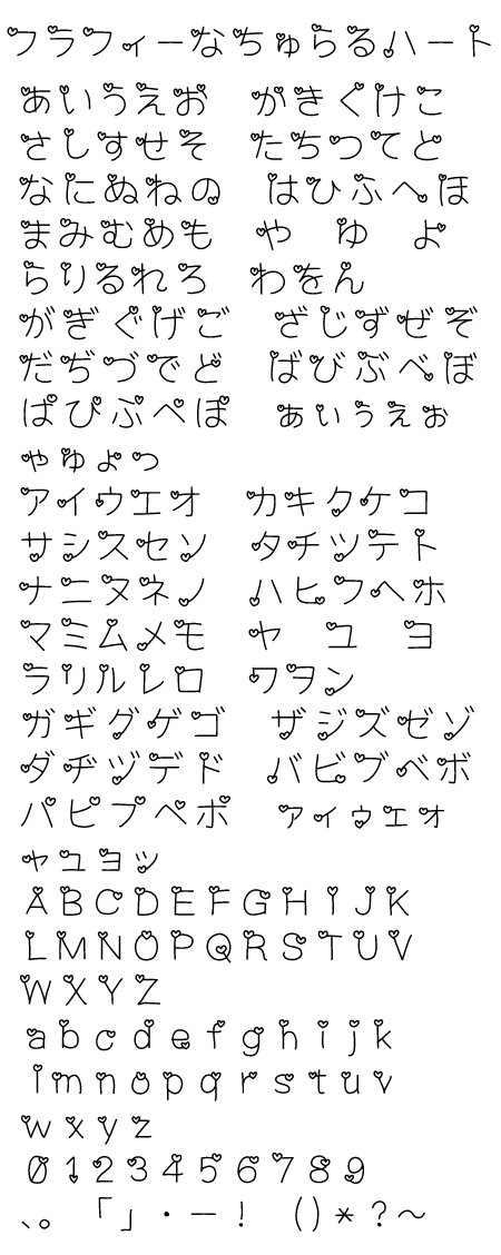フリーフォント*フラフィーなちゅらるハートfluffy。