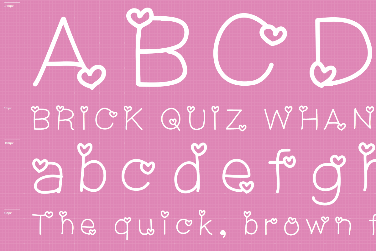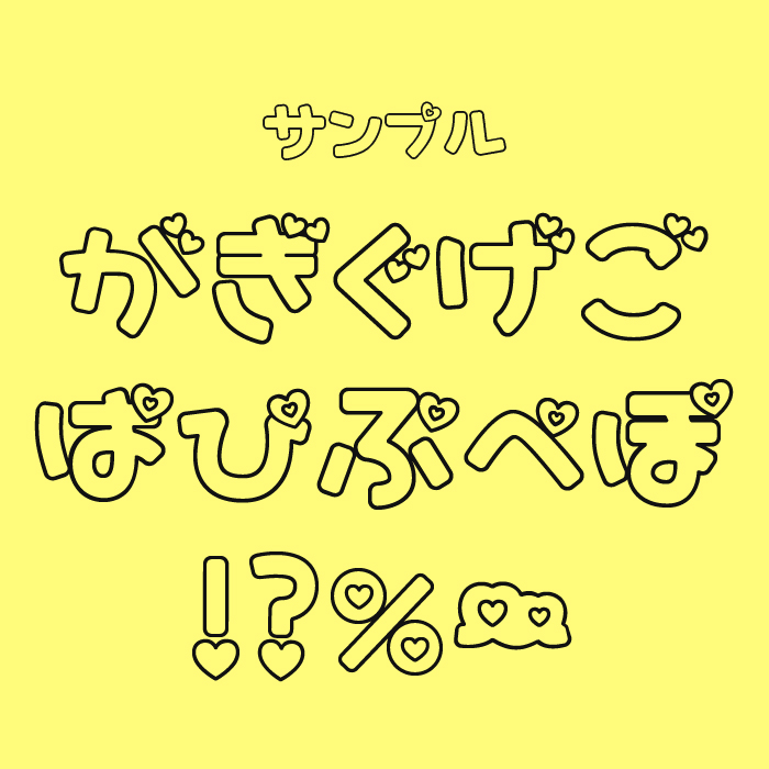 無料素材ハートの装飾をしたかわいい手書き日本語フォント「S2Gらぶ」。