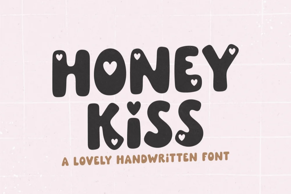 無料素材丸みのついた太字とハート柄がかわいいデコレーションフォント。