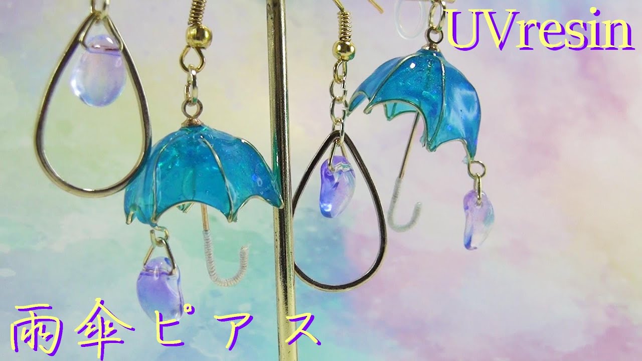 UVレジン初心者作り方!雨の日にピッタリの飾り付き「傘のピアス」らぶレジーナ。