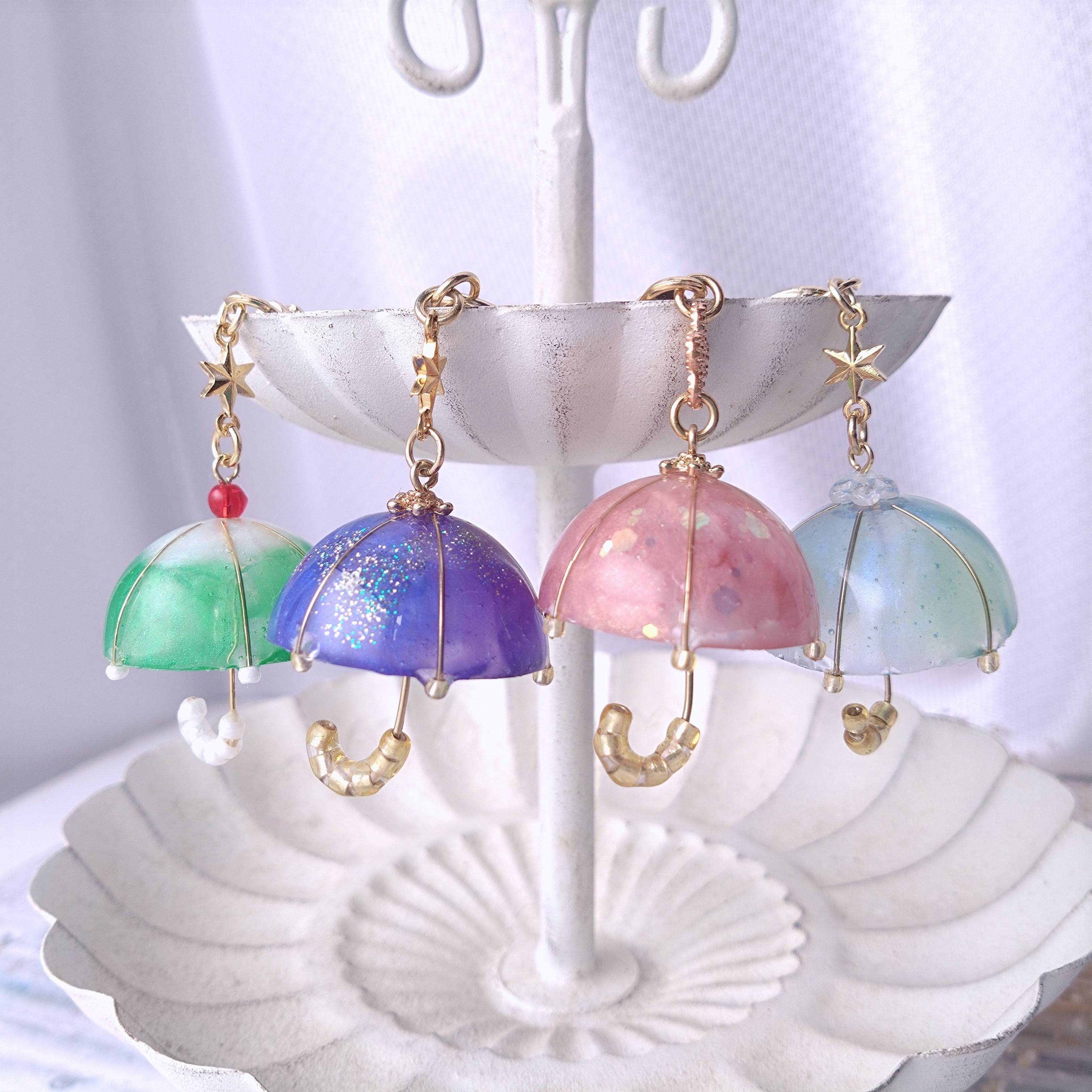 レジンで作る傘チャームの作り方♪ 梅雨を楽しむ!雨の日を彩るアクセサリー♪ 丸ピンを組んで好きなカラーレジンを流すだけ! 立体で可愛い傘TikTok。