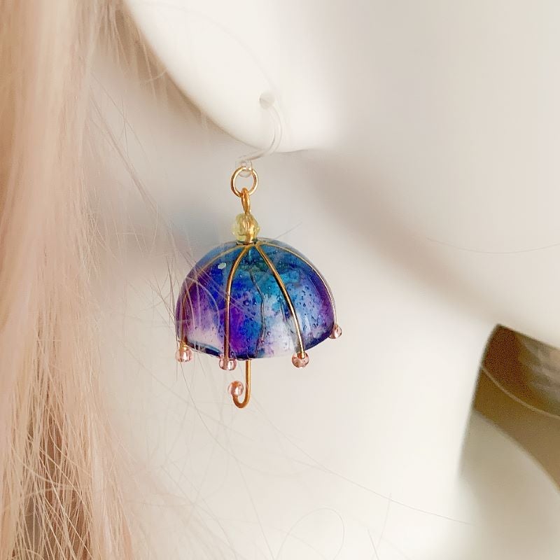 夜を護る傘。 雲と傘レジン 星屑と雫付き ピアス イヤリング - azucar - BOOTH。