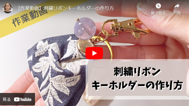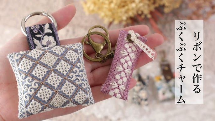ぷっくりインド刺繍リボン チャーム作り How to make a ribbon keychain キーホルダ。