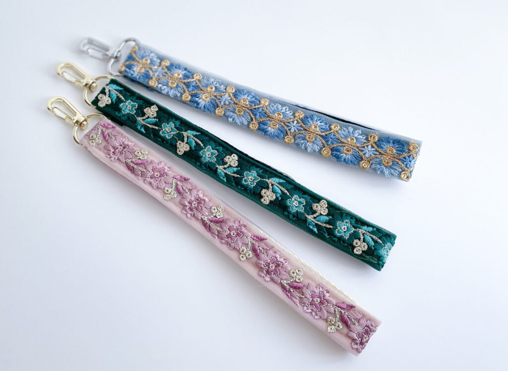 刺繍リボンとワニカンでストラップを作る-Nago's handmade ☆*。