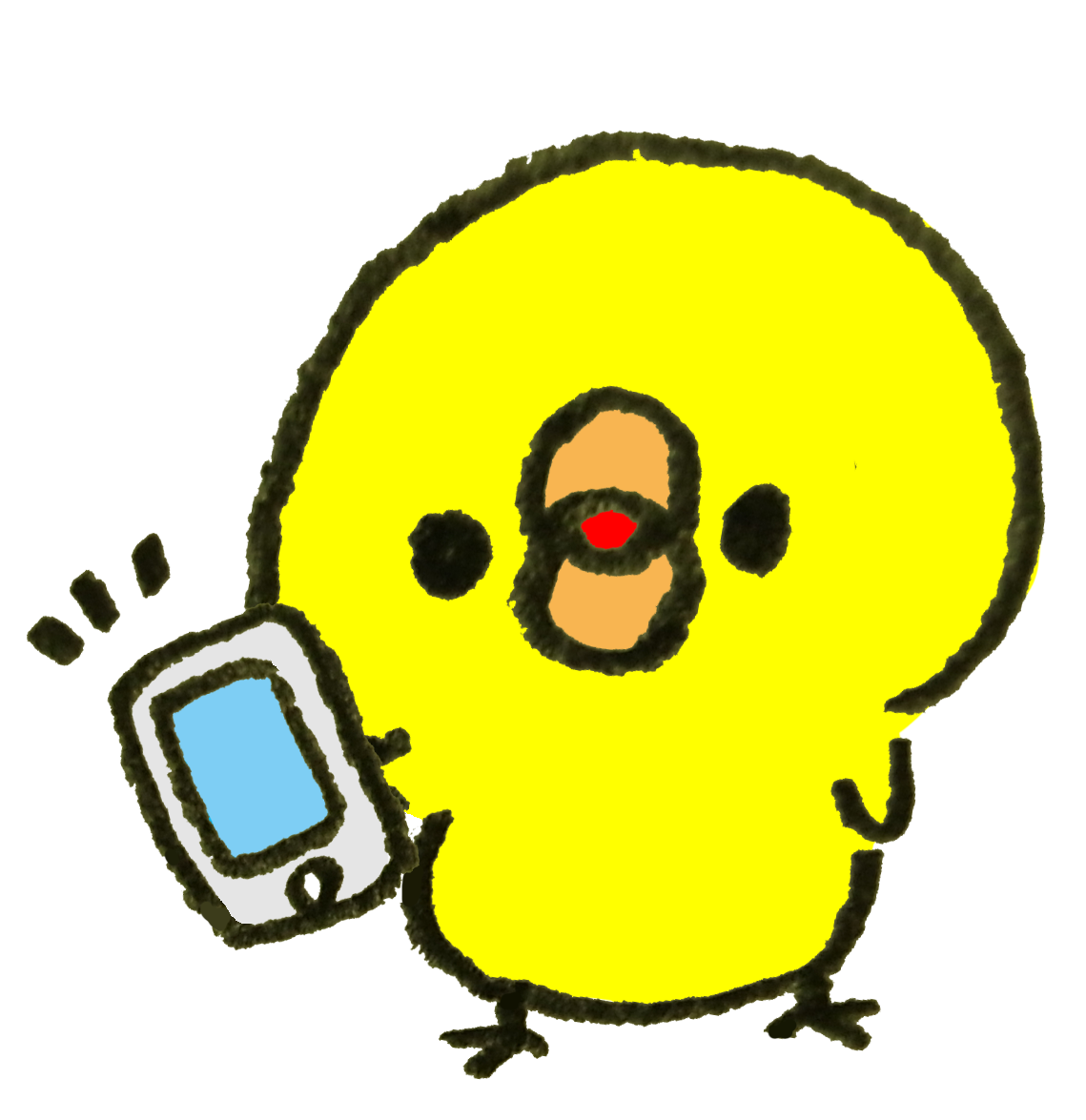 スマートフォンを持つひよこのイラストゆるくてかわいい無料イラスト・アイコン素材屋「ぴよたそ」。