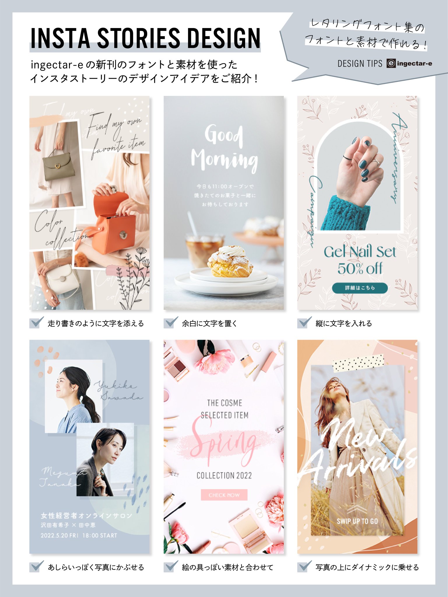 ingectar-e design on X: "オシャレなインスタストーリーのデザイン! ①走り書き ②余白多め ③縦に入れる ④写真にかぶせる⑤絵の具と合わせる ⑥ダイナミックに 「おしゃれなレタリングフォント集」のフォントデータと素材を使用しています😉スタイリッシュガーリー。