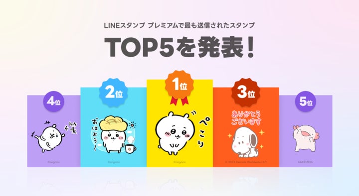 4周年を迎えるLINEスタンプのサブスク「LINEスタンプ プレミアム」が有料会員数190万人を突破!ユーザーに送信されている人気LINEスタンプランキングTOP5を発表!LINE株式会社のプレスリリース。
