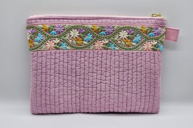 インド刺繍リボンのヌビポーチの作り方裏地あり、20cmファスナーKANAMARI かなまり。