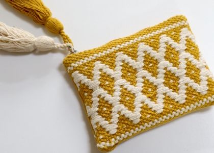 手編みのポーチに★簡単すぎるファスナー付き内袋の作り方。