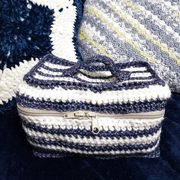 いつでもどこでも編み物~?!ボーダー模様のバニティポーチハンドメイドの作り方・アイデア暮らしニスタ。