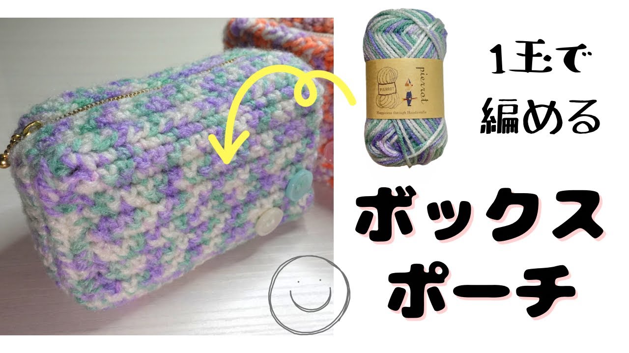 🔰初心者🔰1玉で 簡単♪ファスナー付きボックスポーチ✩.*˚BOX pouch かぎ針編み。