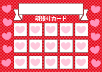 出席カードはがきサイズピンクスタンプカードテンプレートシール台:イラスト無料。