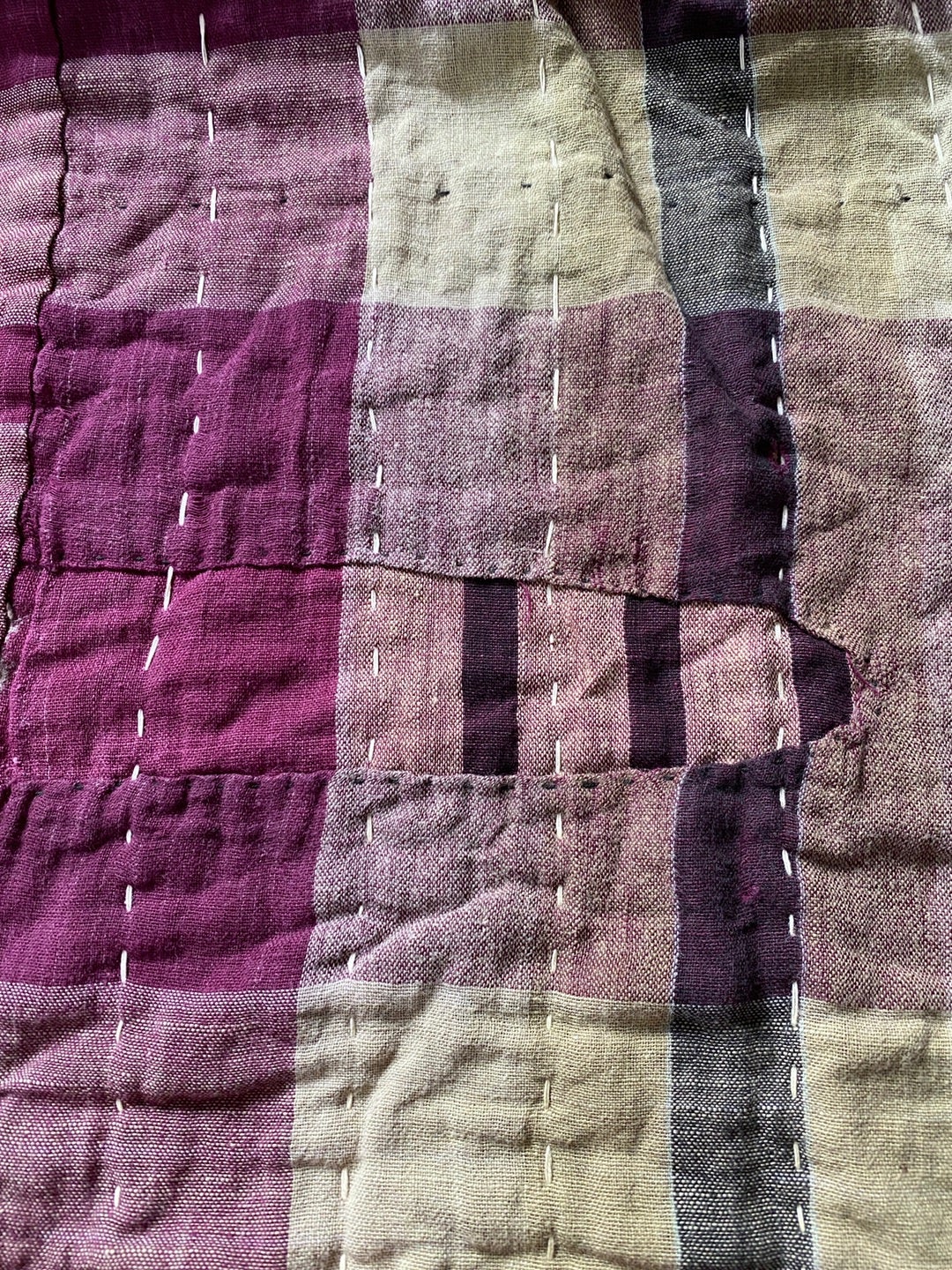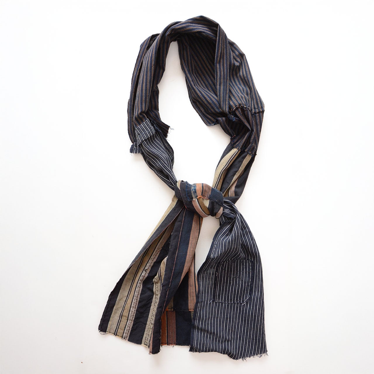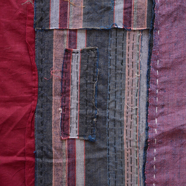 襤褸布 古布 木綿刺し子つぎはぎ鳥無地縞模様リメイク素材生地ジャパンヴィンテージ つぎはぎされた襤褸古布の木綿縞模様ストール —ハンドステッチが映えるスカーフにもインテリアにも使えるファブリック難波商店野良着・古布・襤褸 の通販。