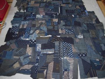 襤褸布古布藍染木綿つぎはぎ布団皮縞模様絣ジャパンヴィンテージリメイク素材。