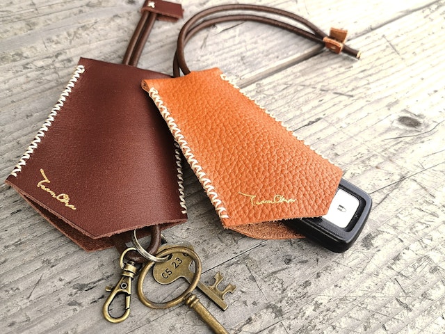 小さなハギレで 簡単キーカバー作り方│初心者向け レザークラフト DIY。