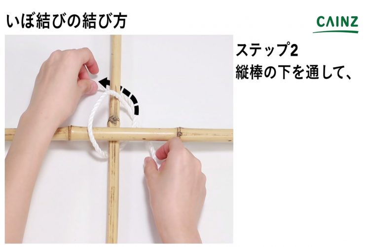 となりのカインズさん カインズ公式on X: " 保存版突然ですが、ロープの結び方を解説していきます。 1.いぼ結び 男結びいぼ結びは、垣根 を作るときなどに使われる結び方です。支柱などを十字に組むときにも使われます。使用するロープやひもには、水で湿らせた。