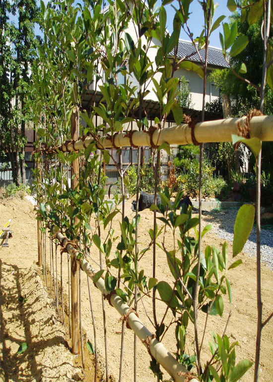 四ツ目垣の作り方 胴縁四段吹き寄せ十川日本庭園研究室。