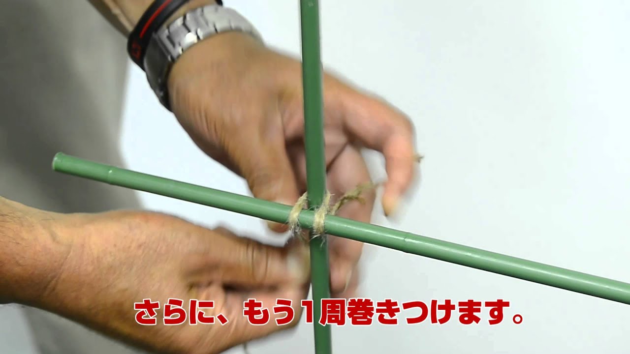 いぼ結び 男結び のコツ しゅろ縄で竹垣・支柱を十字に結ぶ結び方ナビ 〜 How to tie 〜 - YouTube。