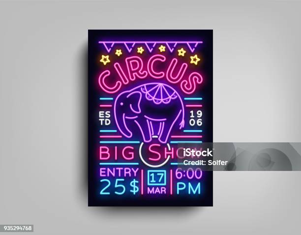 ネオンのスタイルでサーカス チラシ象ネオン サイン ポスター明るいバナーネオン パンフレットタイポグラフィ デザイン テンプレートサーカスサーカスの看板広告光夜ベクトル イラスト - お祝いのベクターアート素材や画像を多数ご用意 - iStock。