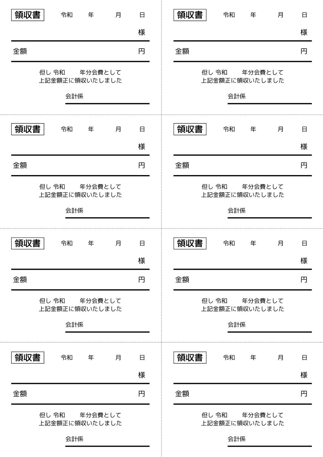 領収書テンプレート12「A4縦方向4枚割り付け」 ワード・Word 無料ダウンロードテンプレートNAVI。