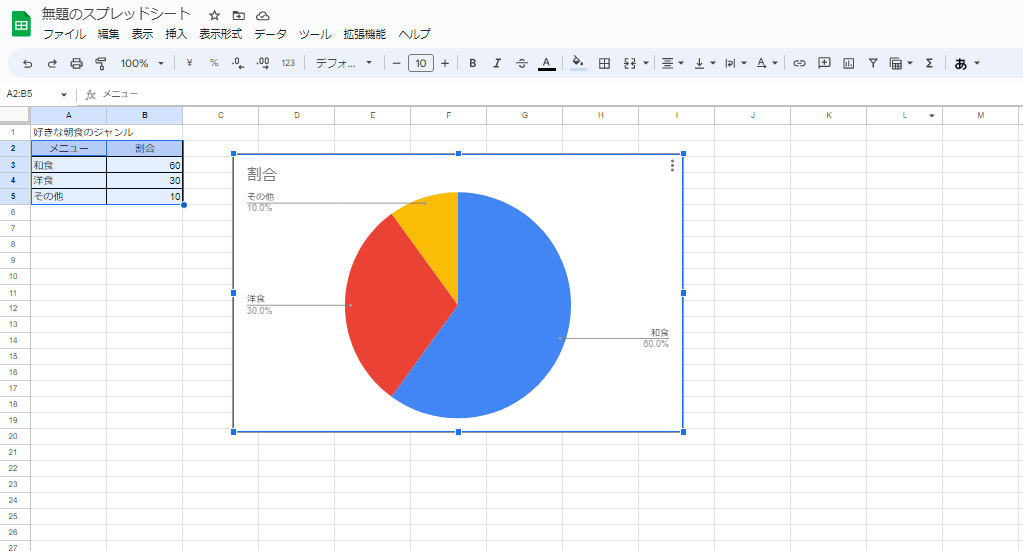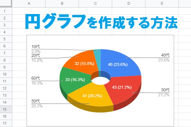 円グラフの作成方法内訳・割合をわかりやすく見せる円グラフスプレッドシートの使い方。