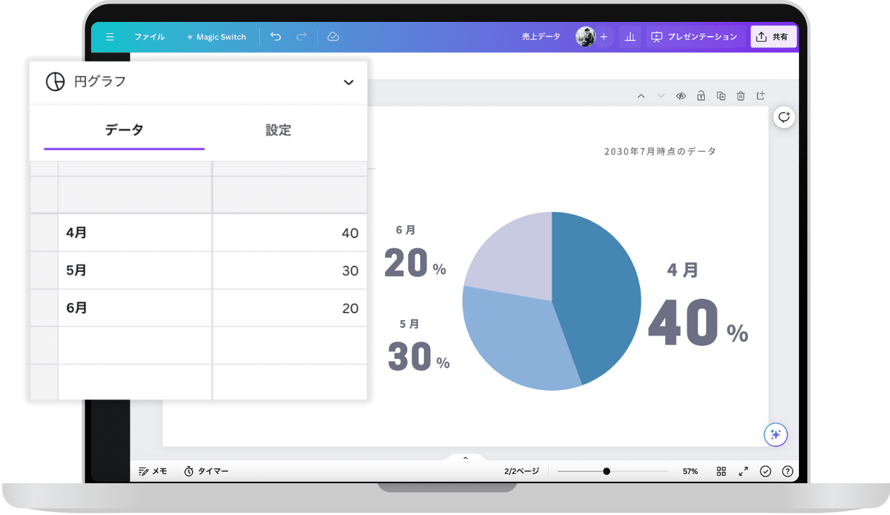 円グラフ作成ソフトEdrawMax-円グラフを自動生成。