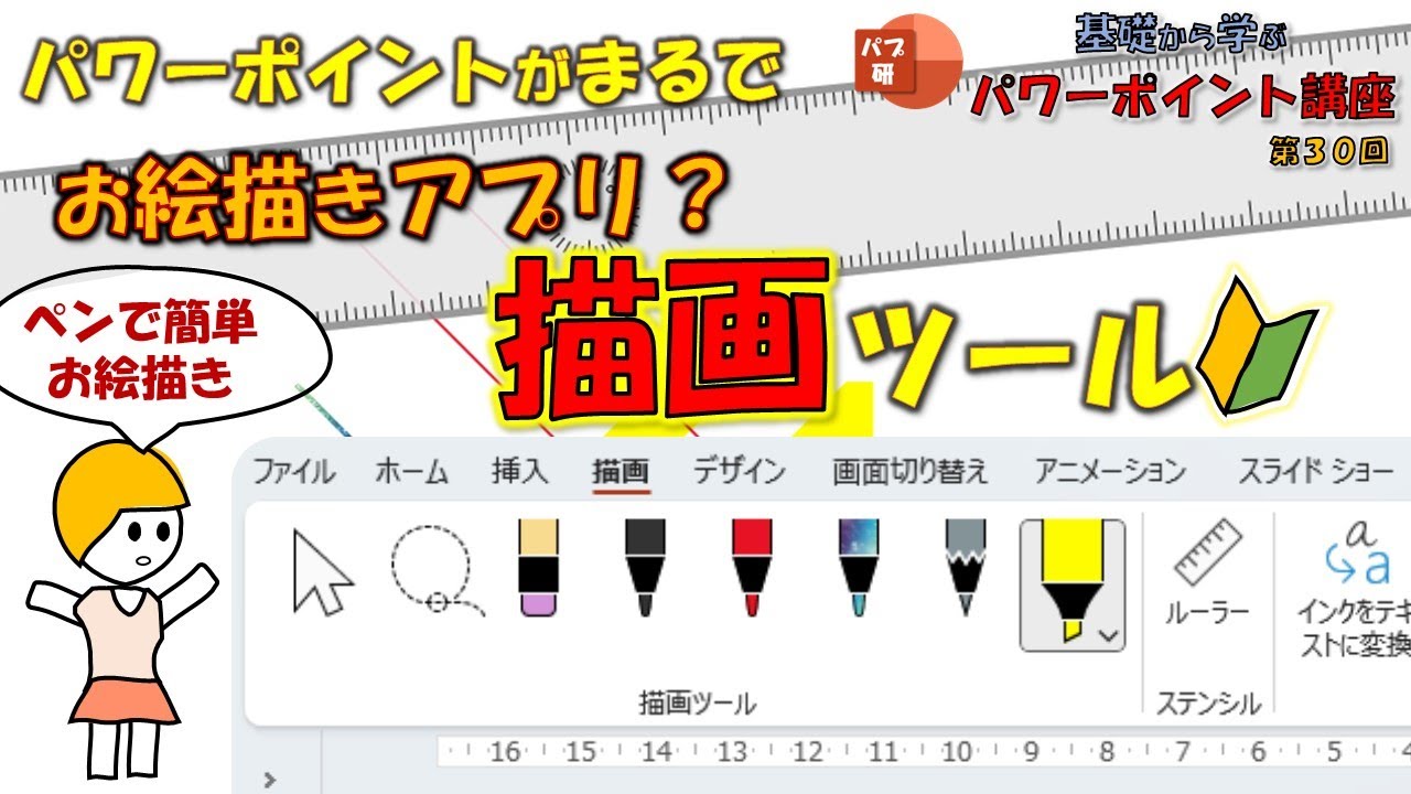 パワポ講座030まるでペイントツールな描画機能!定規も使って手書き風に書き込めます - 初心者向けPowerPoint講座。