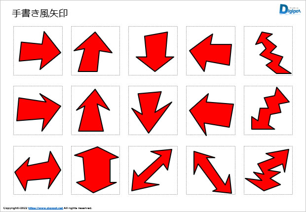 手書き風矢印図形 パワーポイント エクセルフリー素材、無料素材のDigipot。