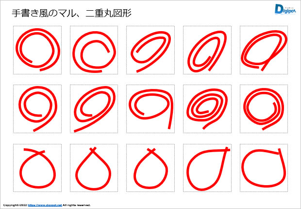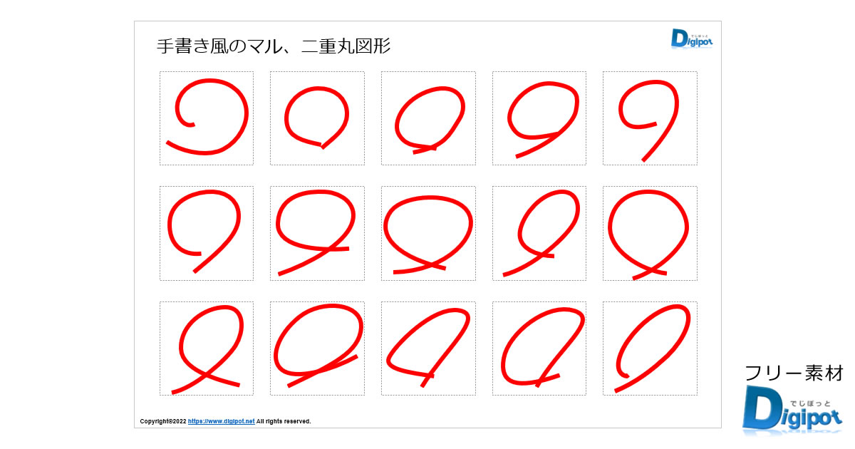 手書き風のマル、二重丸図形 パワーポイント エクセル ワード 文章、図解強調用素材フリー素材、無料素材のDigipot。