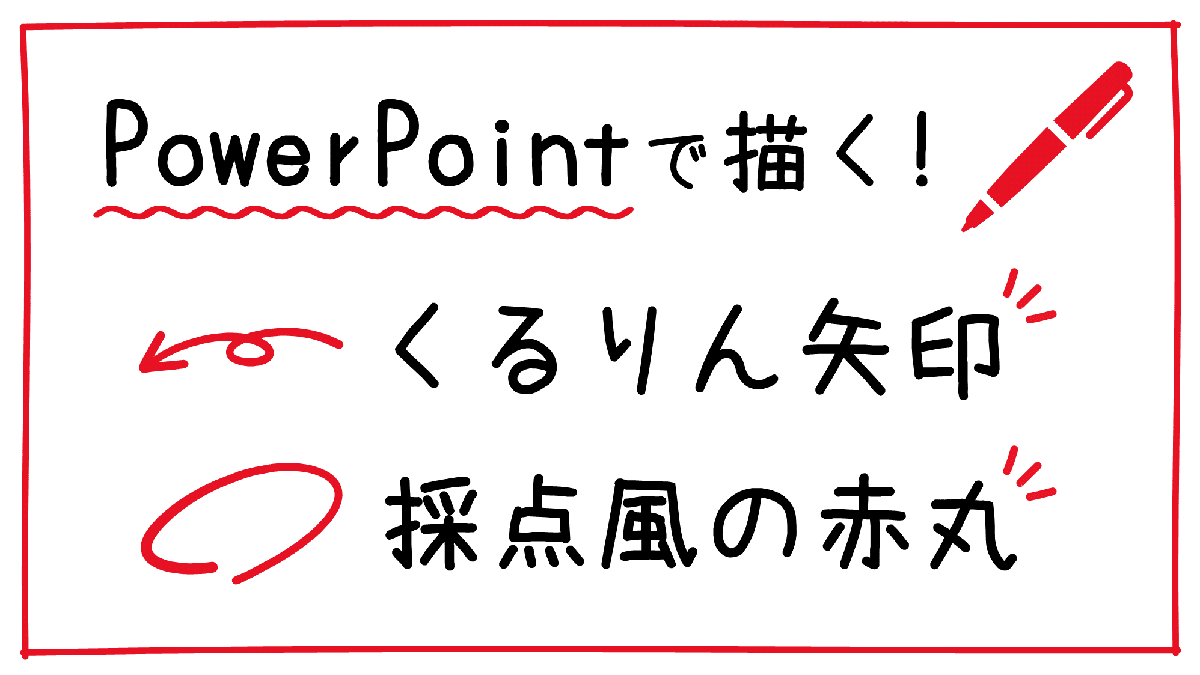 PowerPointでくるりん矢印や採点風赤丸を赤ペンで描く方法PPDTP。