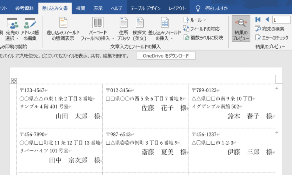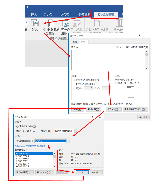 Wordの差し込み印刷で宛名ラベル Excel住所録からWordで宛名印刷。