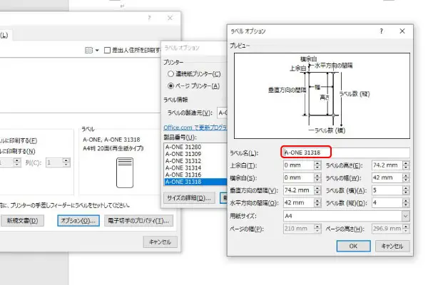 ラベルシールや名刺用紙のサイズ登録 Word・ワード。