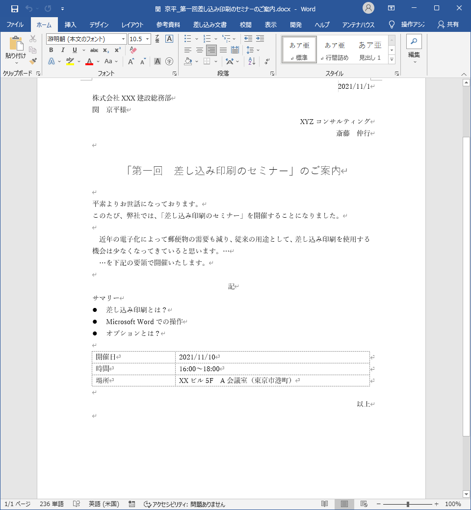Word 差し込み印刷のやり方①テクニカルノーツ有限会社ワン・エックス。