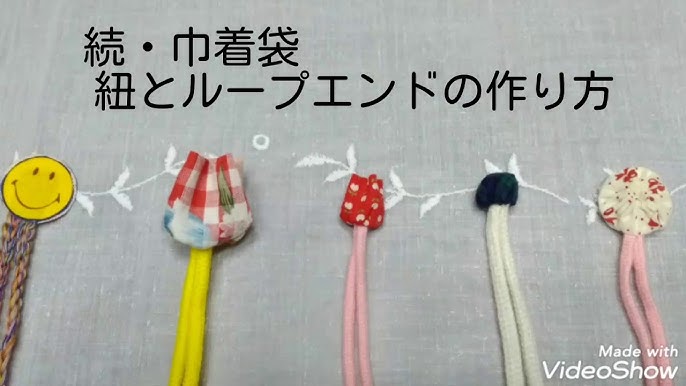 巾着のループエンド 巾着の紐先 「几帳結び 酢漿草結 」 ループエンド シリーズ2作り方・型紙 Loop End Cloverleaf KnotTutorial - YouTube。