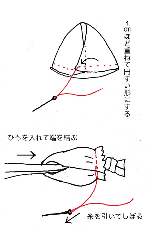 巾着の紐の通し方 2本交差タイプ- ぎんがむちっく 手作り子ども服や可愛い小物たち。