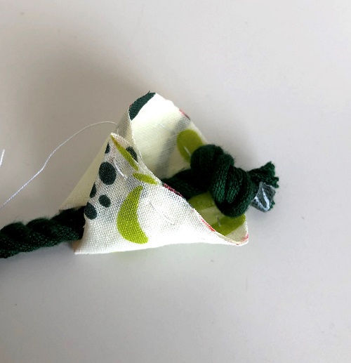 巾着の紐の先のほつれ止め!ハギレでかわいいループエンドの作り方息子デコ。