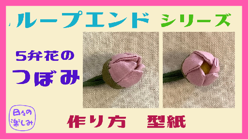 巾着のループエンド 巾着の紐先 「5枚の花びらのつぼみ」 ループエンド シリーズ8作り方・型紙 Loop End Fivepetaled BudTutorial& Patternどんぐりの日々の楽しみ。