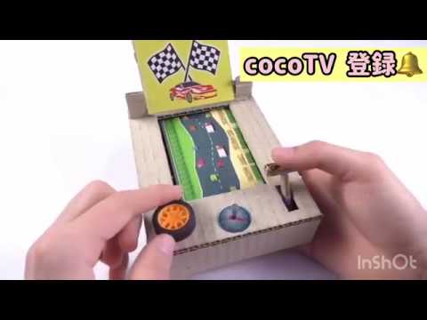 夫が自作したレースゲームです。,ゲームセンターでよく見かけるレースゲームが孫の遊び道具として家でできないかと思い色々と考えたかった結果、ひらめいたようです!,家にある物を中心に作成しました。, 構想から完成までは一ヶ月以上。, 車は磁石で動くような仕組みで、ハンドルを回しながら調整します。,孫たちがとても楽しく遊んでくれています。, 大人も子どもも楽しめる遊具の完成です🙌,。