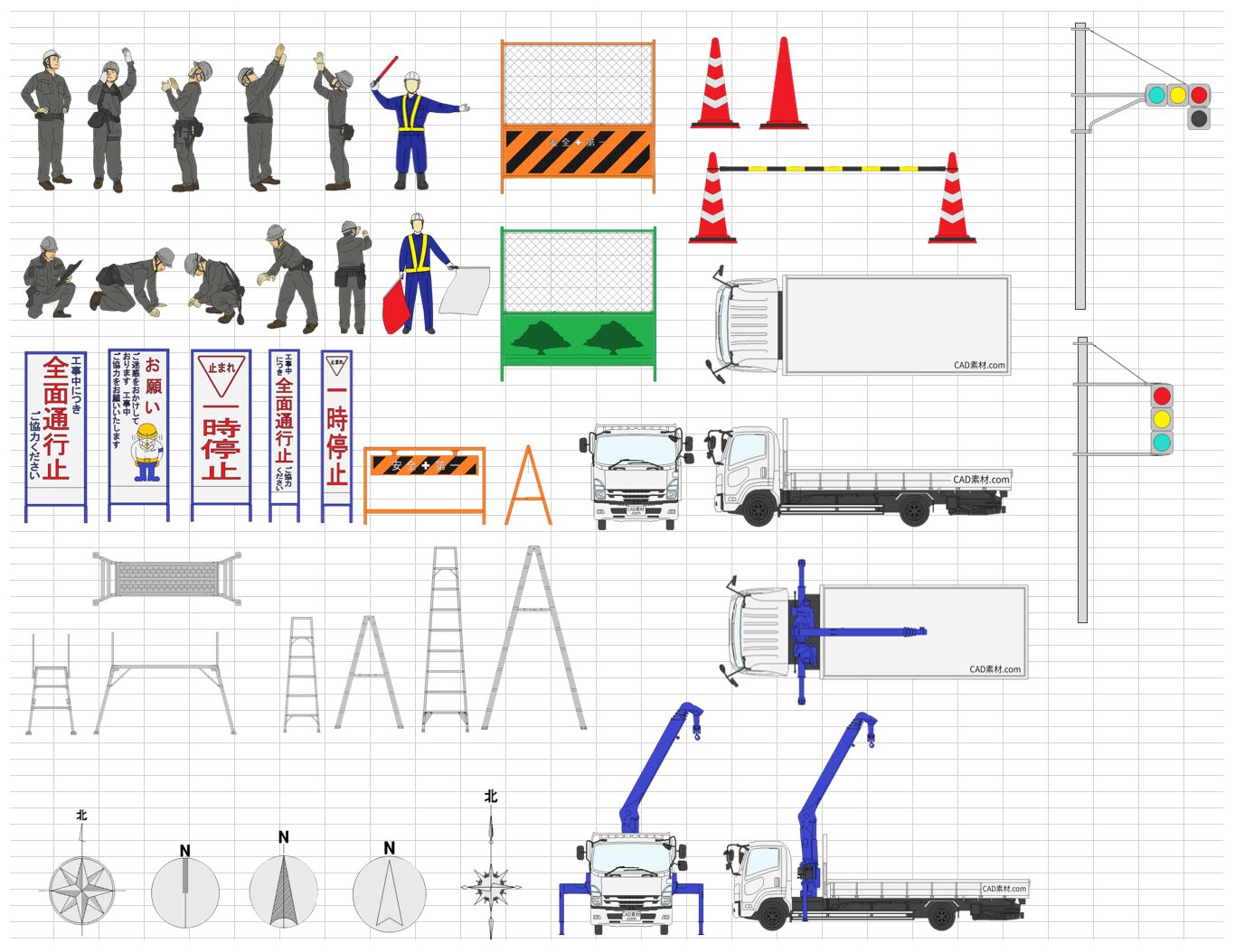 無料 工事・施工計画書・道路許可書用イラスト Excel図形CAD素材.com。