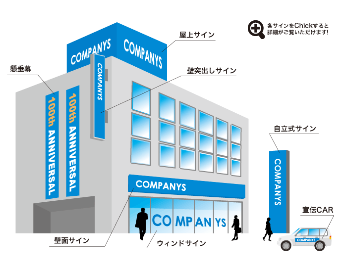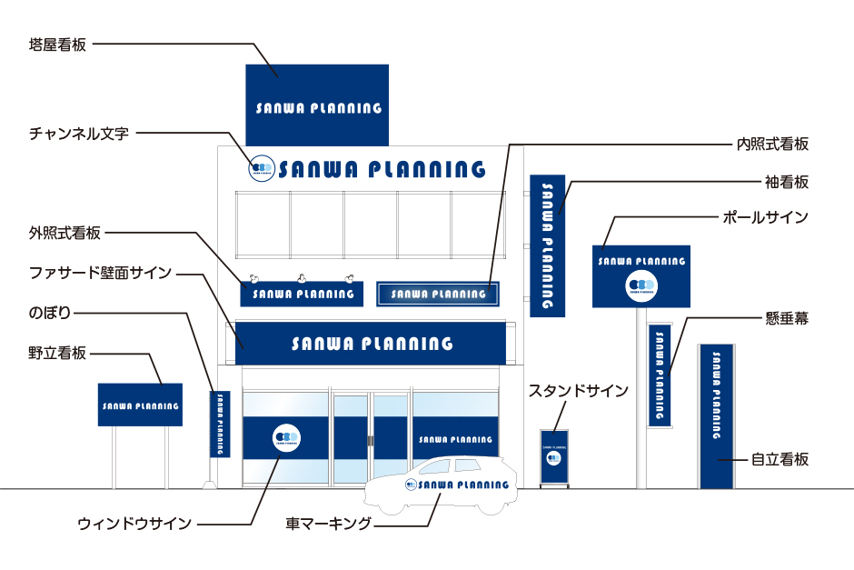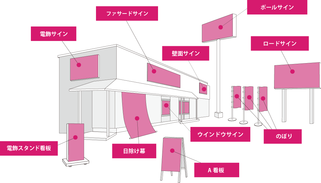 看板の種類各種看板・大型サインの調査・企画・デザイン・製作・施工 アド・サイン株式会社。