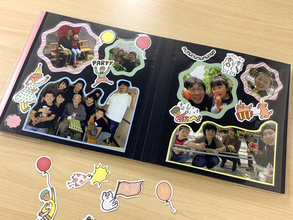 簡単に写真を可愛く切り取れる!イラストいっぱいの手作りアルバムを子供に作ろう 手作りアルバムアルバムキッチン。