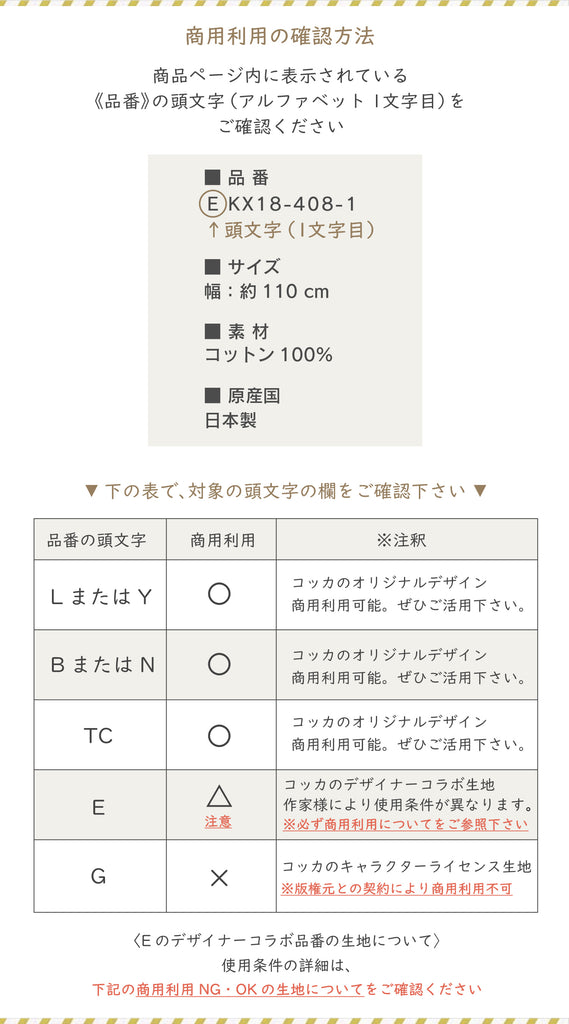 コッカ cocca,kokka 生地の商用利用についてメーカー公式通販。