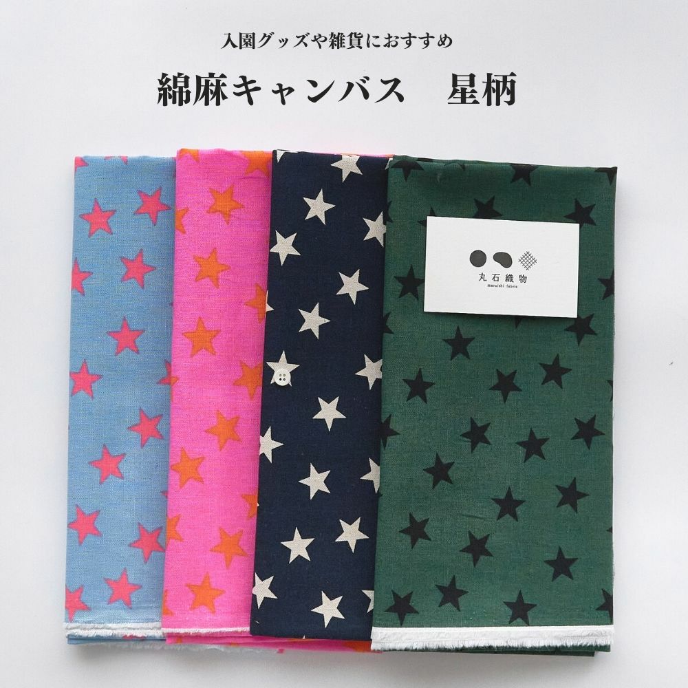 入学 入園 コットン リネン 綿麻 星柄 プリント 生地通販のマルイシ 商用利用可。