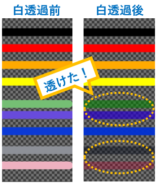白を透過線画背景の白抜きやカラーイラストのニュアンス変更に。