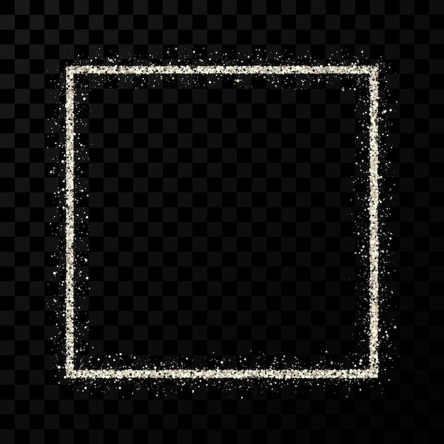 シルバーのキラキラフレーム。暗い透明な背景に光沢のある輝きのある正方形のフレーム。ベクトルイラストPremiumベクトル素材。