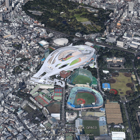 ザハの新国立競技場をグーグルアース上で3Dで見ることができ、景観について考えることができるサイト「myscape.jp」が公開architecturephoto.net。